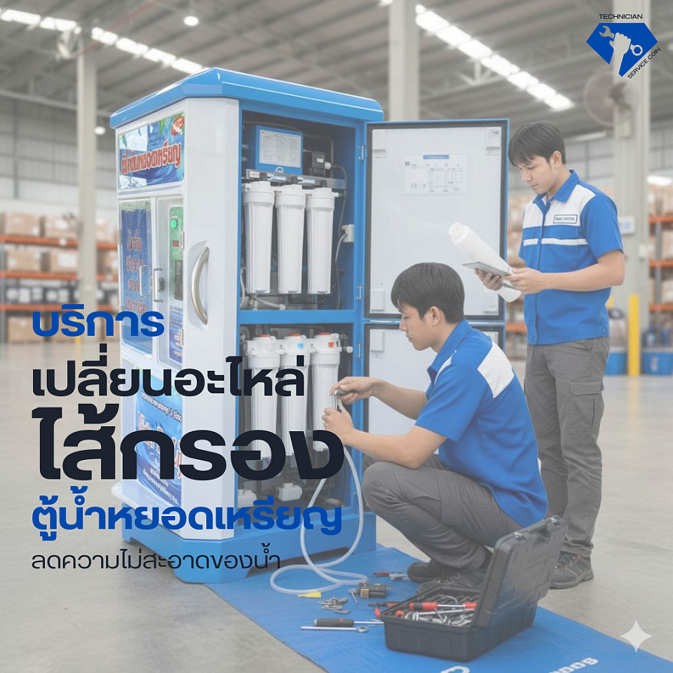 การบริการจัดเปลี่ยนอะไหล่ไส้กรองตู้น้ำหยอดเหรียญ